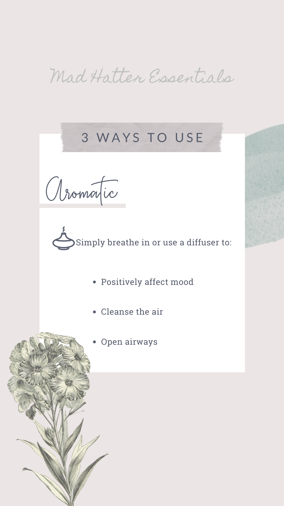 “By putting essential oils directly into the air we breathe, we can influence the feeling of our environment, and, more powerfully, our own emotions.